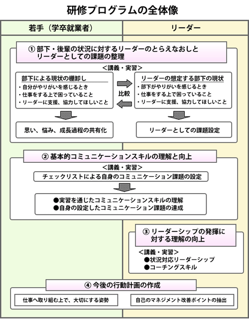 本研修は、平成16年、厚生労働省職業安定局若年者雇用対策室が若年者早期離職防止対策を目的に実施した、